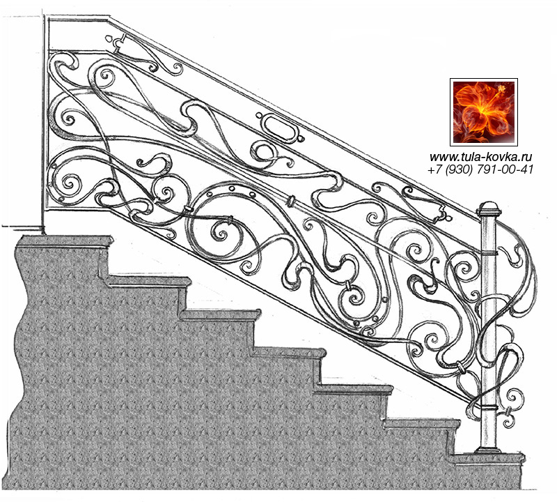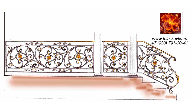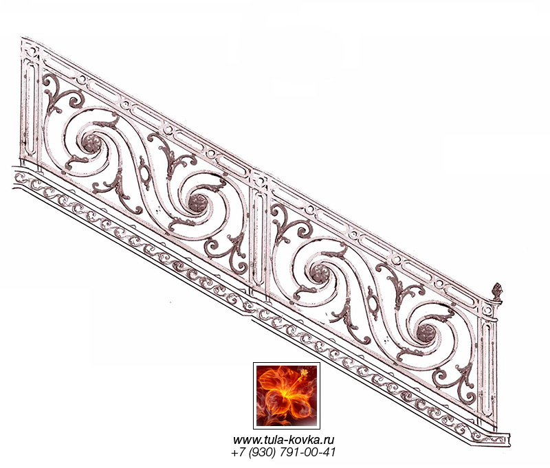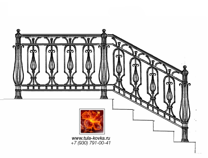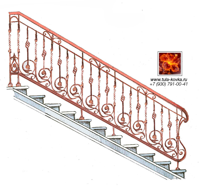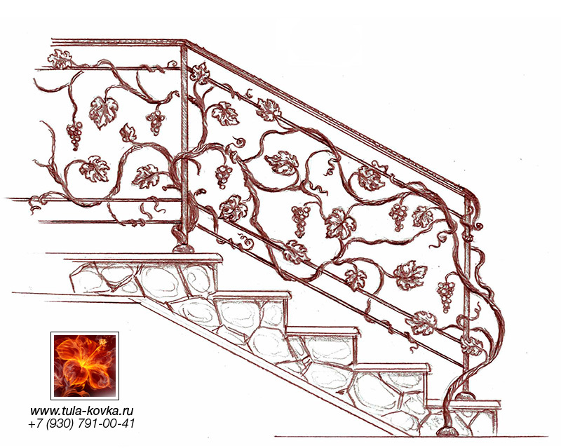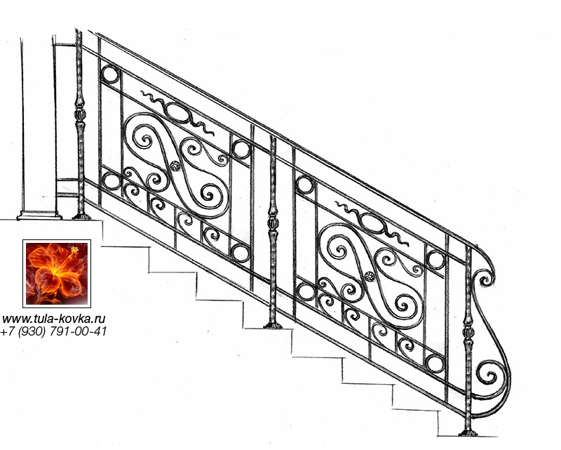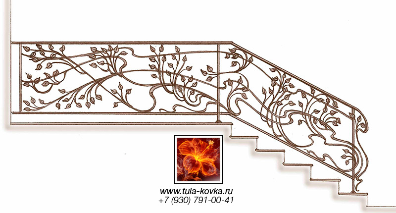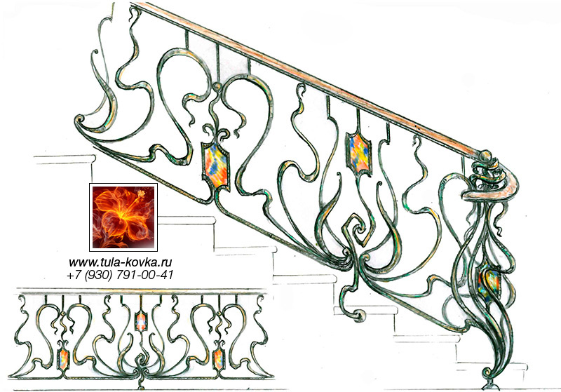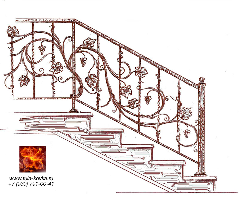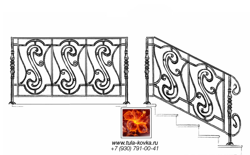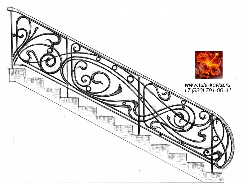 Узоры ковки для лестниц и ограждений представлены различными стилями и типом исполнения (прямые, радиальные, наклонные). Эскизы пополняются, на сайте представлены основные типы, вариации рисунков ковки подбираются по ходу работ над заказом.